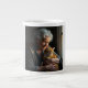 Das Bild einer älteren Dame, die ihre Katze liebevoll umarmt, ziert diese charmante Tasse.