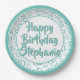 20. Party Random Number Pattern Aquamarin/weiß Pappteller