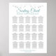 Machen Sie Ihren Hochzeitsempfang mit diesem Sitzplan schön. Es zeichnet sich durch ein schlichtes und dennoch elegantes Design aus, mit aquamarinem oder türkisfarbenem & grauem Text auf weißem Hintergrund mit einem silbernen Imitat-Folie mit Blumenrahmen. Dieses Diagramm zeigt die Tabellenzuordnungen, damit Ihre Gäste den richtigen Tisch leicht finden können.