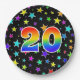 Dieses lustige, farbenfrohe und fröhliche Papier-Plattendesign zeichnet sich durch eine große Zahl "20" aus, die ein inspiriertes Muster des Regenbogenspektrums enthält. Der Hintergrund weist ein farbenfrohes Sternmuster auf. Teller wie diese können bei einer Feier zu Ehren des zwanzigsten Geburtstags eines Mannes, zum 20. Geburtstag eines Paares oder zum 20. Geburtstag eines anderen 20. [~Z0000493]