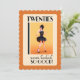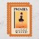Step into the Roaring Twenties with this vintage inspired 20th birthday invitation! Featuring a glamorous flapper in a black dress, dancing under the spotlight against a warm orange background, this design perfectly captures the elegance and excitement of the 1920s. The back is fully customizable, allowing you to add all your party details with ease. Perfect for a Great Gatsby-style celebration, jazz night, or vintage themed bash, this invitation sets the stage for a night to remember!