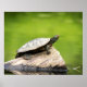 Eine bemalte Schildkröte, die auf einem Holzgeländer im Fluss La Chute in Ticonabweicha, NY sitzt. Dieses Bild wurde von Debbie Quick of Debs Creative Images aufgenommen, während sie im Kajak draußen war. Weitere Fotografien von Debbie finden Sie auf ihrer Website unter: www.debscreativeimages.com