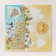 Ein spektakulärer Cartoon Südkaliforniens - mit Los Angeles, Anaheim, San Diego und vielen anderen Städten und den meisten Stränden. Diese helle und charmante Szene hat alles - ein Surfer hängt zehn, während eine Meerjungfrau auf einem Felsen sitzt, ein Killerwal aus dem Wasser springt, ein muskulöses Strandpaar flex zu beeindrucken, Zootiere warten auf Touristen und ein Bull schlägt in einen Bullenfighter, alles unter der warmen kalifornischen Sonne, die hoch über alles scheint.