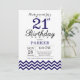 Einladung zum 21. Geburtstag mit Navy Blue Zickzack.Schwarz und Weiß. Erwachsener Geburtstag. Mann oder Frauen laden ein.