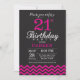 21. Geburtstag Einladung mit Schwarz und Heiß Rosa Zickzack. Tafel. Erwachsener Geburtstag. Mann oder Frauen laden ein.