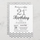 21. Geburtstag Einladung mit Silver Glitzer Zickzack. Schwarzer und Silberner Glitzer. Erwachsener Geburtstag. Mann oder Frauen laden ein.