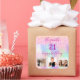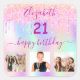 Für ein Party zum 21. Eine Collage von 3 Fotos von sich selbst, Freunden, Familie, Interesse oder Haustieren. Ein mädchenhafter, femininer Regenbogen, holografischer Hintergrund in lila, rosa, Rose gold und Minzgrün. Dekoriert mit Imitaten Glitzer Tropfen, Farbe Tropfausdruck aussehen. Personalisieren und fügen Sie ihren Namen und Alter 21. Der Text: Happy Geburtday wird mit einem angesagten handgeschriebenen Style-Skript mit Swashes geschrieben. Lila Text.