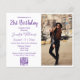 elegantes minimalistisches 21. Geburtstagsgeschenk Foto lila Script qr-Einladungsblatt
