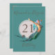 Eine Meerjungfrau zum Thema 21. Geburtstag Einladung. Eine schöne Meerjungfrau, die über die Karte schwebt, ist die Grundlage dieses Geburtstags individuellen Einladungs-Designs auf einem aquamarinen Hintergrund. Ändern Sie einfach die Informationen für Ihre persönliche Einladung.