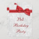 Die eleganten 21. Geburtstags-Party Einladungen der Frauen. Die 21./21. Geburtstagsparty der Frau lädt ein. Schöner weißer Damast-Muster-Hintergrund mit einem hübschen, stilvollen roten Bogen und Bänder-Bild. Diese glamourösen, schicken und stilvollen Einladungen sind schön raffiniert und auf beiden Seiten dekoriert / bedruckt.BEACHTE: Alle Einladungen auf Zazzle haben flache gedruckte Bilder. Bow- und Bandbilder, die von Digital-Designs von Elena gekauft wurden. Wenn Sie Hilfe bei der Anpassung Ihrer Einladung benötigen, kontaktieren Sie mich bitte über meinen Shop und ich werde Ihnen gerne helfen.
