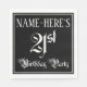 Dieses luxuriöse und elegante Geburtstagsthema besticht durch einen personalisierten Namen und die Botschaft "21. Geburtstag Party". Die große Zahl "21." und die Wörter "Geburtstagsparty" sind in opulentem Skriptstil-Text, und der Hintergrund ist standardmäßig schwarz gefärbt (obwohl er angepasst werden kann). Luxuriöse, elegante Papierservietten wie diese könnten nützlich sein, um bei einer Geburtstagsfeier zu feiern, die anlässlich des 21. Geburtstages von jemandem gefeiert wird. [~Z0000563]