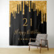Ein trendiger und glamouröser 21. Geburtstagsgeschmack. Ein klassischer schwarzer Hintergrund mit goldenen Glitzer-Tropfen aus Imitaten, Maltropfen-Look. Mit dem Text: 21 und glücklich zum Geburtstag. Personalisieren und einen Namen hinzufügen. Golden farbiger Text. Der Text: Happy Birthday ist mit einem modernen handgeschriebenen Stil geschrieben. Kann als Begrüßungsbanner, Party-Wanddekor oder als Fotobooth-Kulisse verwendet werden.