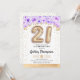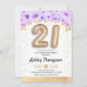 21. Party Einladung. Elegantes Design in Imitaten Glitzer Gold mit Blumenakzent. Einladende Karte mit Goldnummer 21 Ballons, Script-Schriftart mit Konfetti. Lila, Lavendel und weiß. Ideal für eine stilvolle Feier. Nachricht, wenn du ein Alter brauchst.
