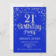 21. Geburtstag Party Einladung. Elegantes Design in königsblau und Imitate Glitzer Silber. Features stilvolle Skript-Schriftart und Konfetti. Nachricht, wenn du ein Alter brauchst.