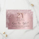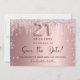 Eine trendige und mädchenhafte Save the Date-Karte für ein Party zum 21. Geburtstag. Rosa Farbverlaufshintergrund mit rosa und Imitat silberne Glitzer Tropfen und Staub. Personalisieren und fügen Sie Datum und Namen/Text hinzu. Der Text: Save the Date ist mit einem großen angesagten, handgeschriebenen Stilskript geschrieben. Nummer 21 mit einer Rose goldfarbenen Ballon Stil Schriftart.