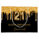 Ein schicker schwarzer Hintergrund. Dekoriert mit Imitaten vergoldeten Glitzer-Tropfen, Farbe tropfend aussehen. Personalisieren und einen Namen hinzufügen. Mit dem Text: Happy Birthday. Der Name wird mit einem handgeschriebenen Stil-Skript geschrieben. Nummer 21 wird mit einem Schriftart im Ballonstil geschrieben.