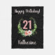 Chic schwarz 21. Geburtstag Fleece Decke mit einem rot rosa 21 und floralen Kranz. Passen Sie den Namen, das Alter und die Grußbotschaft an.