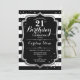 21. Geburtstag - Silberne Schwarz-weiße Streifen Einladung