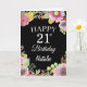 21. Geburtstag Wasserfarben Blume Schwarze Karte