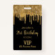 elegantes 21. Geburtstag schwarzes Gold tropfende Glitzer vip Pass Abzeichen