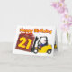 Ein Gabelstapler hält ein Paket mit dem Alter auf ihm in hellgelben Buchstaben. Eine fröhliche und lustige Geburtstagskarte für einen Mann.