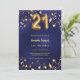 Eine moderne, stilvolle Einladung zum 21. Geburtstag. Ein marineblauer blauer Hintergrund, mit goldenen Sternen geschmückt. Die blaue Farbe ist ungleichmäßig. Personalisieren Sie Ihren Namen und Ihre Party-Daten und fügen Sie diese hinzu.
