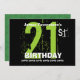 Dieses zeitgenössische Design in grün und schwarz mit seinem großen und feinen Text ist ein lustiger Weg, um die Leute zu einem 21. Geburtstag zu feiern. Text auf Einladung ist vollkommen anpassbar. Personalisieren Sie Ihre Party-Details!