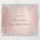 Für ein mädchenhaft und glamourös 21. Geburtstag Party. Eine Rose Gold Imitate metallisch aussehen Hintergrund mit Rose Gold, Rosa und Imitate silverglitter Tropfen, Farbe Tropfen Aussehen. Personalisieren und fügen Sie ein Datum, Name und Alter 21. Der Name ist in dunkelgrau geschrieben mit einem modernen handgeschriebenen Stil.