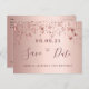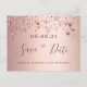 Eine feminine und glamouröse Save the Date-Karte für ein 21. Party im Alter von 21 Jahren. Ein feminin rosa, Rose Gold Imitate metallisch aussehend Hintergrund mit Imitaten Rose goldenen funkelnden Sternen. Vorlagen für ein Datum und Ihren Text. Dunkle Rose goldfarbene Buchstaben. Der Text: Save the Date ist mit einem großen angesagten, handgeschriebenen Stilskript geschrieben. Zurück: Rose Gold Hintergrund. Vorlagen für Ihre Party-Details. Schwarzer Text.