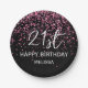 21. Sparkling Hot Pink Glitzer Black Birthday Pappteller