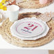 21 und fabelhafte 21. Geburtstag Papier Teller. Das runde Design ist eine elegante und stilvolle Komposition, die Typografie und Blumenakzente kombiniert. Die Farbgestaltung wird in Rosa- und lila-Dunkeltönen gehalten, wodurch ein ausgeklügeltes, weibliches Design entsteht, das einen bleibenden Eindruck verlasse.