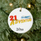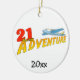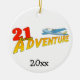 Auf einer Seite dieses Keepsake-Ornaments befindet sich ein Flugzeug, das über abenteuerlichen Text fliegt, der lautet: "21 - das neue Abenteuer". Laden Sie Ihr eigenes Foto auf der umgedreht Seite dieses Ornaments hoch, das in Gold gerahmt ist. Dieses Design ist ein großartiges Geburtstagserinnerungsgeschenk für die besondere Person in Ihrem Leben, die ein Action-Film-Fan oder für ein abenteuerliches Party ist.