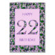 22. Geburtstagskarte für eine Dame, die Blume mag. Eine elegante Geburtstagskarte mit einem Hintergrund lila Blume. Dies ist die perfekte Karte für ein Mädchen, das alles bläserne oder lila Lieben macht!