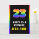 Dieses lebendige und lustige Geburtstagskarten-Design mit einer großen Zahl "23" mit einem vielfarbigen Regenbogenspektrum inspiriert Farbverlaufsmuster, mit der Meldung "HAPPY 23. BIRTHDAY" und einem personalisierten Empfängernamen. Im Inneren befindet sich eine bearbeitbare Geburtstags-Grußnachricht, oder man könnte sie löschen und leer verlassen werden, wenn eine Nachricht von Hand geschrieben werden soll. Eine optimistische, maßgeschneiderte Geburtstagskarte wie diese könnte eine lustige Art sein, jemandem, der seinen dreiundzwanzigsten Geburtstag feiert, einen Geburtstag zu schenken. [~Z0000636]