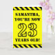 Die Vorderseite dieses lustigen und kühnen Geburtstagskarten-Designs ist mit einem personalisierten Namen und der Meldung "YOU’RE NOW 23 YEARS OLD!" in schwarzem Schablonentext auf gelbem Hintergrund versehen. Die Vorderseite weist auch ein auffälliges schwarz-gelb gestreiftes Muster an den oberen und unteren Rändern auf. Im Inneren befindet sich eine individuell angepasste Geburtstagsgrüßbotschaft, oder man könnte sie löschen und leer verlassen werden, wenn eine Nachricht von Hand geschrieben werden soll. Eine solche individuelle Geburtstagskarte könnte eine lustige Art sein, Geburtstagswünsche an jemanden zu senden, der seinen dreiundzwanzigsten Geburtstag feiert. [~Z0000413]