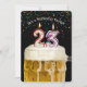 23 Geburtstagskandale in Tasse von Bier mit bunten Konfetti auf schwarz für 23. Geburtstagsparty einladen.