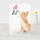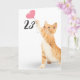 Goldkatze mit rosa Herzballon zum 23. Geburtstag auf weißem Hintergrund. Die Hintergrundfarbe kann geändert werden.