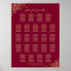 Diese schöne Hochzeitssitzkarte ist mit goldener Schriftzeichen-Kalligraphie auf bordeauxrotem, maronfarbenem oder weinrotem Hintergrund geschmückt und hat dekorative goldene Imitate mit Spitzen-Frills in jeder Ecke. Die Anordnung ist traditionell und bietet Platz für 230 Gäste an 23 Tischen mit 10 Plätzen pro Tisch. Die Namen des Ehepaares und das Hochzeitstermin sind unten aufgeführt. Dieses elegante und unkomplizierte Design verleiht Ihrem Hochzeitsempfang Eleganz und Charme und macht es den Gästen bequem, ihre Tische zu finden.