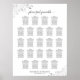 Dieses 23-Tisch Hochzeitsstühle-Diagramm zeichnet sich durch ein elegantes, traditionelles Design aus, mit dunkelgrauem Text auf einem klassisch weißen Hintergrund und silber-grauen Imitat-Folientafeln in den Ecken. Der Titel der Skriptkalligrafie lautet: Bitte finden Sie Ihre Tabelle. Enthält Tischbelegungen für 230 Gäste für 10 Gäste pro Tisch. Eine raffinierte und schicke Art, Ihren Gästen zu helfen, ihren Platz am Empfang zu finden.