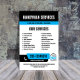 Mit diesem feinen, anpassbaren Flyer, der die Aufmerksamkeit schnell auf sich zieht, können Sie Ihren 24-Stunden-Handy oder Installations-Service fördern. Mit einer hohen Sichtbarkeit und einem klaren 24/7 Icon signalisiert es sofort die Verfügbarkeit von Notfällen. Alle Farben und Texte sind vollständig editierbar, sodass Sie Ihre Marke anpassen und die wichtigsten Services hervorheben können. Egal ob in Geschäften vor Ort, von Tür zu Tür verschickt oder auf Bulletin Boards fixiert, dieser Flyer ist so gebaut, dass er sich von der Masse abhebt und in den Köpfen der Menschen bleibt. Es ist eine mächtige, berufliche Methode, Ihrer Community zu zeigen, dass Sie der verlässliche Experte sind, den sie jederzeit anrufen können, wenn etwas schief geht.