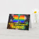 Die Vorderseite dieses lustigen und farbenfrohen Geburtstagskarten-Designs zeigt eine große Zahl "24" mit einem farbenfrohen Regenbogenspektrum inspirierten Farbverlaufsmuster, zusammen mit der Meldung "HAPPY 24. BIRTHDAY" und einem bearbeitbaren Empfängernamen. Der Hintergrund der Vorderseite zeigt ein lebendiges, buntes Muster, das durch das Bersten von feierlichen Feuerwerken inspiriert wird. Die Innenseite hat eine individuelle Geburtstagsgrüßnachricht, oder könnte gelöscht und leer verlassen werden, wenn eine Nachricht von Hand geschrieben werden soll. Eine fröhliche, individuell anpassbare Geburtstagskarte wie diese kann zum Feiern des vierundzwanzigsten Geburtstags verschickt werden. [~Z0000619]