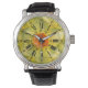 Farbenblass für Anzug jeder Dekoration. Eine komplexe Montage von mehr als 70 Einzelblättern, von Hand platziert und überlagert mit einer Uhr, um Sie pünktlich behalten, ganz nach Ihren Vorlieben. Gelbe Blütenblätter und eine zentrale orange Blume vermischen sie mit 24-Stunden-Formatuhrgesichtern. London, New York und Paris, behalt dich international in der Schleife!