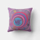 24-Stunden ME Zeit rosa lila blaues Selbstpflege-Kunstkissen. Maßgeschneiderte, gürtelig hübsche Drehkreuze umkreist die Tornado-Uhr. Rosa lila orange blauer Lavendel fröhliche Farben. Hübsch in Rosa sind die Veilchen blau.