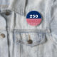Zur Feier des 250. Geburtstags Amerikas hat dieser Button ein blaues Feld oben mit 250 in weißem Text. Er hat rote und weiße Streifen unten, die an die amerikanische Flagge erinnern.