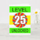 25. Geburtstagskarte für einen Videospieler. Jeder Computerspieler Liebe diese Karte. Mit dem Slogan Level 25 entsperrt, wird dies jedem, der Computerspiele spielt, ein großes Grinsen bescheren.