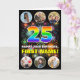 Die Vorderseite dieses fröhlichen und kühnen Geburtstagskarten-Designs zeigt eine große Zahl "25" mit einem lebhaften, farbenfrohen Regenbogenspektrum, inspiriert Farbverlaufsmuster, zusammen mit der Meldung "HAPPY 25. BIRTHDAY" und einem individuelle Name, auf einem farbenfrohen Feuerwerk inspiriert Muster. Oben und unten auf der Vorderseite sind Bilder, die individuell angepasst werden können, vielleicht mit Fotos der Familie und Freunde des Empfängers. Die Innenseite verfügt über eine individuell anpassbare Geburtstagsgrüßnachricht, oder könnte gelöscht und links werden, wenn eine Nachricht von Hand geschrieben werden soll. So eine positive, personalisierte Geburtstagskarte kann zum Feiern des fünfundzwanzigsten Geburtstags geschickt werden. (Fotografie © Storytree Studios, Stanford, CA.) [~Z000660]