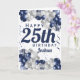 Eine wunderschöne Marine und Silberballon glückliche 25. Geburtstagskarte. Dieses fabelhafte Design ist der perfekte Weg, um jemandem einen glücklichen fünfundzwanzigsten Geburtstag (oder jedes Alter!) zu wünschen, Personalisieren Sie mit unserem eigenen individuelle Name und Botschaft. Blaue Typografie und wunderschöne marineblaue und silberne Ballons.