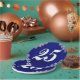 Regal mit silberfarbenen Tellern und verzierten Ecken mit blauem Hintergrund für einen 25. Geburtstag. Alternativ können Sie auch für ein Jubiläum.