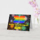 Die Vorderseite dieser bunten und auffälligen Geburtstagskarte zeigt eine große Zahl "25" mit einem farbenfrohen Regenbogenspektrum, inspiriert Farbverlaufsmuster, zusammen mit der Meldung "HAPPY 25. BIRTHDAY" und einem bearbeitbaren Empfängernamen. Der Hintergrund der Vorderseite zeigt ein spannendes, farbenfroh-berissenes, feierliches Feuerwerk-inspiriertes Muster. Die Innenseite verfügt über eine individuell anpassbare Geburtstagsgrüßnachricht, oder könnte gelöscht und links werden, wenn eine Nachricht von Hand geschrieben werden soll. Eine fröhliche, maßgeschneiderte Geburtstagskarte wie diese kann zum Feiern des fünfundzwanzigsten Geburtstags verschickt werden. [~Z0000619]
