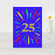Eine explosive 25. Geburtstagskarte! Was für eine wunderbare Art, Geburtstagsgrüße zu schicken. Die Zahl 25 in hellgelb mit einer Explosion von hellen Farben und Sternen.
